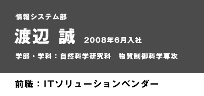 長い歴史を持つ会社ということもあり、社員の方々は深い経験と業務知識を持つプロフェッショナルばかりです。高度なITスキルを持つ社外の協力会社と一緒に仕事をする機会も多くあります。情報システム部の仕事は人間が相手の仕事であり、自分1人の力で出来るものではありません。それぞれが異なるバックグラウンドを持つ人達と協力しながら一体となり目的を達成するには、高いコミュニケーション能力と視野が広く柔軟でバランスのとれた考え方が不可欠かと思います。また、決めたことは最後まで100%全力でやり切るという姿勢も大切だと思います。